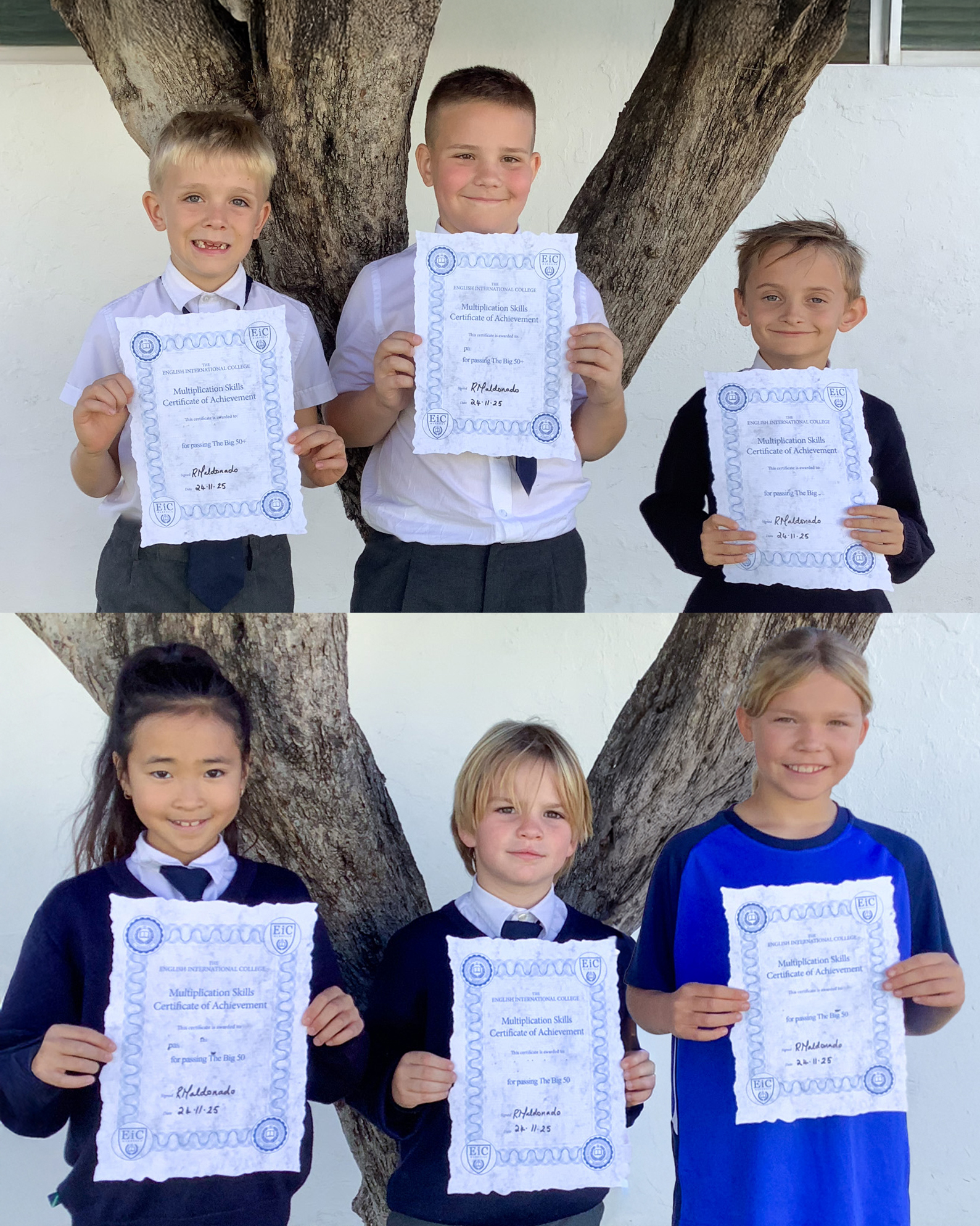 The Big 50 is 50 mixed questions which need to be answered in under 5 minutes – a special mention must go to Artur, Fed, and Luca in Year 3, who managed it in under 2 minutes 30 seconds! The silver certificate is 75 questions with missing numbers and division facts – there has been lots of success at this level.